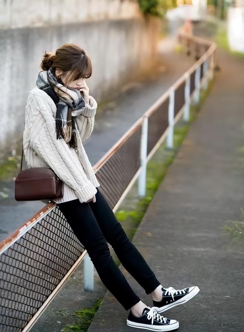 配搭毛衣和平底鞋很森系