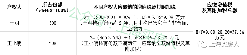 产品价格为 300 多万元,产权比例为王明 30%,王小明 70%,现由于家庭原因准备以 800 多万元出售该房,请问本次出售怎样缴纳