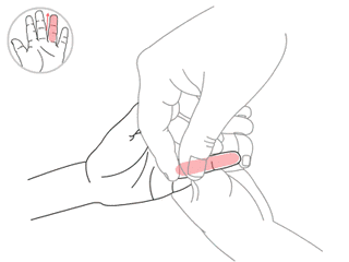 手法:用一只手握住孩子的手腕,用另一只手的拇指或食、中指二指螺纹面从孩子的肘部下推至腕部。