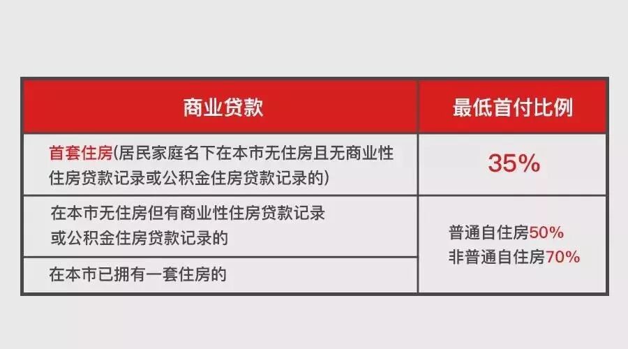 (1)居民家庭购买首套住房(即居民家庭名下在本市无住房且无商业性住房银行贷款记录或公积金住房银行贷款记录)申请商业性个人住房银行贷款的,首付款比例不低于35%。