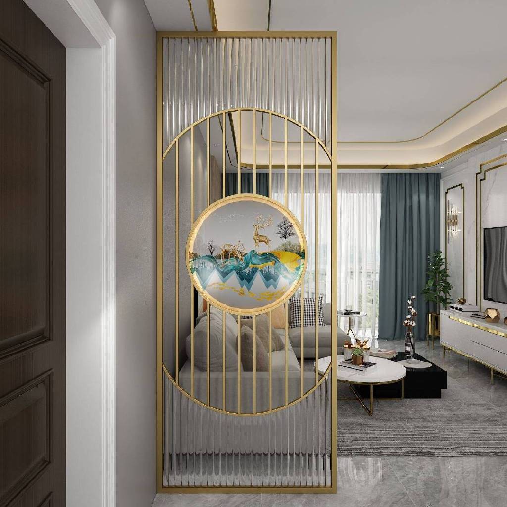 墙面间距间应下实上虚,直面正门的本馆下南半部应以较好的墙体或木头来展开家装,做为模版,下部家装能光亮的点缀金属材料如打印服务器。